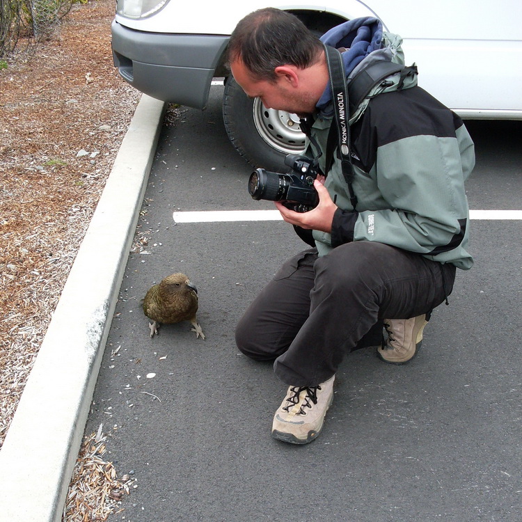 Sur le parking en face du Centre Info d'Arthur Pass National Park, ou lors de marches dans cette région vous aurez surement l'occasion de croiser un de ses fantastiques perroquet que sont les "Nestor Kéa". Connu pour leurs espiègleries et leur gout certain pour tout ce qui est en plastique, il est reconnu comme l'un des oiseaux les plus intelligents. Vous pourrez entendre tout un tas d'histoires ou légendes sur les ravages et destruction qu'ils occasionnent sur les véhicules. Opportuniste et de nature curieuse, il s'approchera sans peur de vous et essaiera même de manger vos lacets ou votre appareil photo!